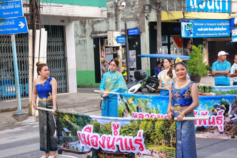 เทศบาลตำบลปากน้ำท่าเรือ ร่วมเดินขบวน เข้าร่วมกิจกรรมกับทางจังหวัดระนอง ภายในงานอาบน้ำแร่ แลระนอง ประจำปี 2569