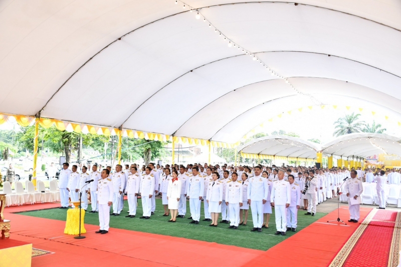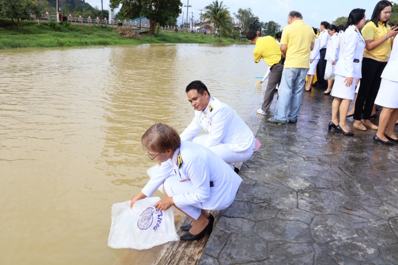ต่อมานายสุพจน์ ภูติเกียรติขจร ผู้ว่าราชการจังหวัดระนอง นำพสกนิกรชาวจังหวัดระนอง ร่วมพิธีถวายสัตย์ปฏิญาณเพื่อเป็นข้าราชการที่ดีและพลังของแผ่นดิน โดยได้กล่าวถวายพระพรชัยมงคล ก่อนจะกล่าวนำถวายสัตย์ปฏิญาณ ร่วมร้องเพลงสรรเสริญพระบารมีและเพลงสดุดีจอมราชา แสดงพลังในการยึดมั่นเป็นข้าราชการที่ดีและพร้อมเป็นพลังของแผ่นดินในการพัฒนาประเทศสร้างความสุขสงบในสังคม จากนั้นได้ร่วมปล่อยพันธุ์สัตว์น้ำเฉลิมพระเกียรติ ณ บริเวณฝายน้ำล้นคลองหาดส้มแป้น เทศบาลเมืองระนอง