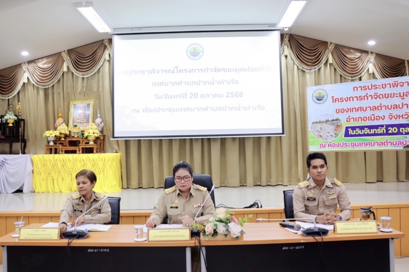 วันจันทร์ที่ 20 ตุลาคม 2568 เทศบาลตำบลปากน้ำท่าเรือ ดำเนินการจัดทำประชาพิจารณ์โครงการกำจัดขยะมูลฝอยทั่วไปของเทศบาลตำบลปากน้ำท่าเรือ ณ ห้องประชุมเทศบาลตำบลปากน้ำท่าเรือ