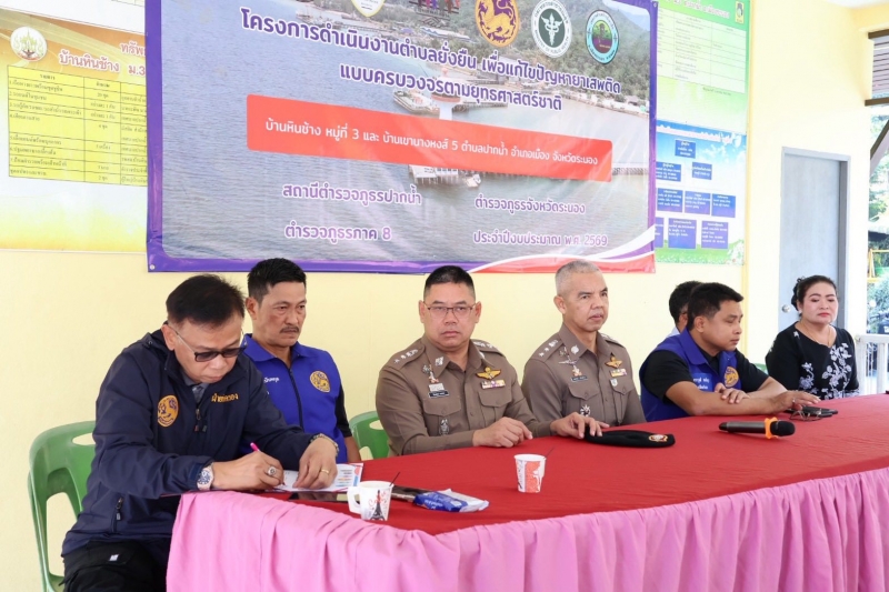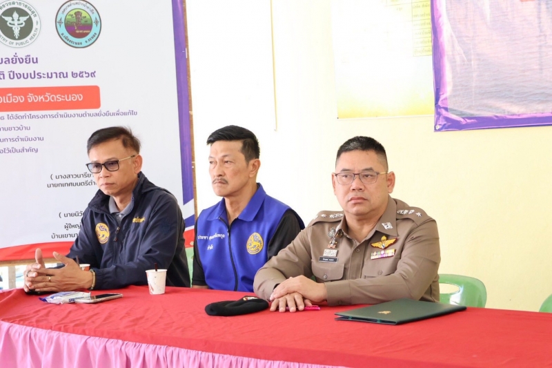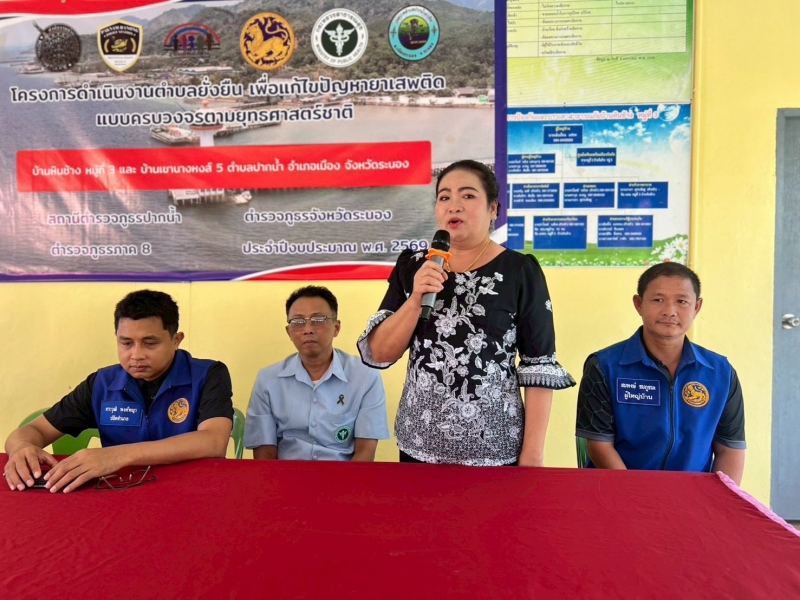 วันที่ 11 กุมภาพันธ์ 2569 นางสาวนารียา ยีซาแล นายกเทศมนตรีตำบลปากน้ำท่าเรือ พร้อมคณะผู้บริหาร ข้าราชการและพนักงานจ้าง เทศบาลตำบลปากน้ำท่าเรือ ร่วมพิธีเปิดตามโครงการตำบลยั่งยืน เพื่อแก้ไขปัญหายาเสพติดแบบครบวงจรตามยุทธศาสตร์ชาติ ณ อาคารเอนกประสงค์บ้านหินช้าง หมู่ที่ 3 ต.ปากน้ำ อ.เมือง จ.ระนอง