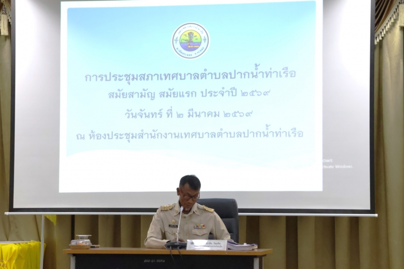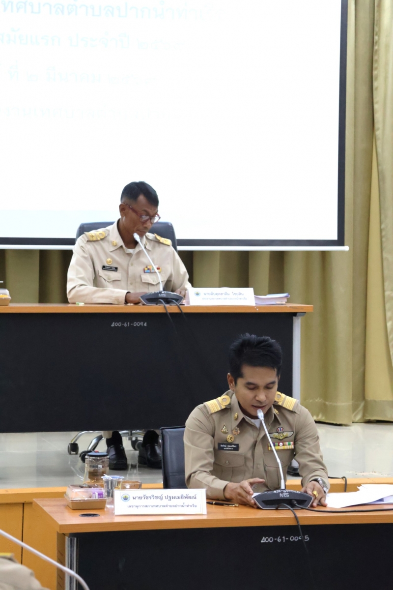 วันที่ 2 มีนาคม 2569 สภาเทศบาลตำบลปากน้ำท่าเรือ ดำเนินการจัดประชุมสภาสมัยสามัญ สมัยแรก ประจำปี 2569 ณ ห้องประชุมเทศบาลตำบลปากน้ำเท่าเรือ ////