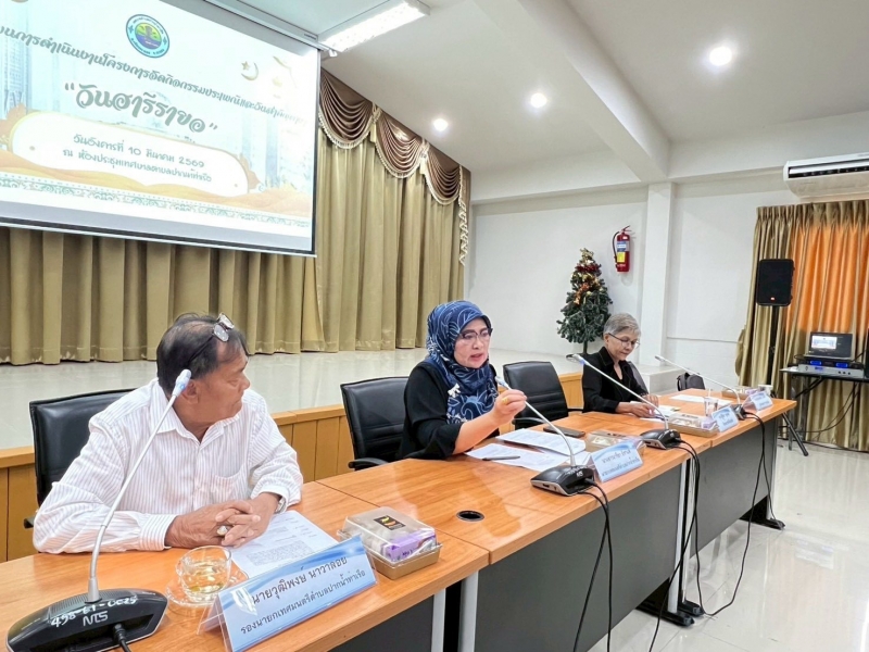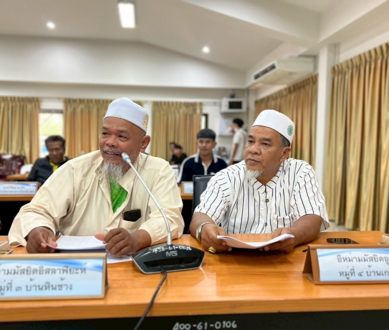 นางสาวนารียา ยีซาแล นายกเทศมนตรีตำบลปากน้ำท่าเรือ ประธานกล่าวเปิดการประชุมวางแผนการดำเนินงานโครงการจัดกิจกรรมประเพณีและวันสำคัญต่างๆ “วันฮารีรอยอ” ณ ห้องประชุมสภาเทศบาลตำบลปากน้ำท่าเรือ
