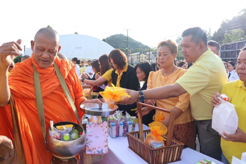 วันจันทร์ที่ 13 ตุลาคม 2568 นายกเทศมนตรีตำบลปากน้ำท่าเรือ มอบหมายให้หัวหน้าฝ่ายจัดเก็บรายได้ ข้าราชการและพนักงานจ้าง เข้าร่วมพิธีทำบุญตักบาตรถวายเป็นพระราชกุศล น้อมรำลึกวันคล้ายวันสวรรคต พระบาทสมเด็จพระบรมชนกาธิเบศร มหาภูมิพลอดุลยเดชมหาราช บรมนาถบพิตร ณ บริเวณลานพระเมรุมาศจำลอง (ร.9) ณ สนามกีฬากลางจังหวัดระนอง/////