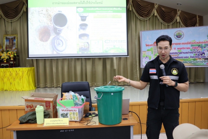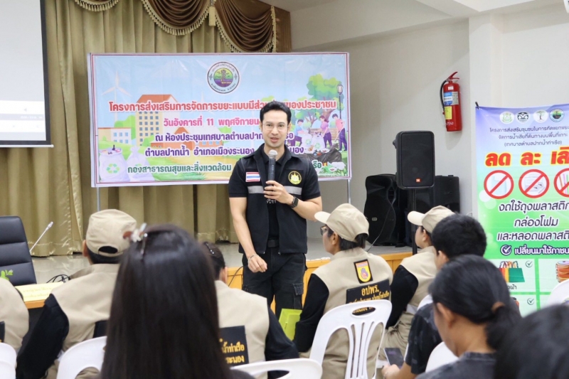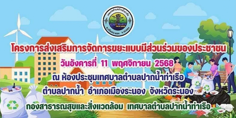 วันที่ 11 พฤศจิกายน 2568 กองสาธารณสุขและสิ่งแวดล้อม เทศบาลตำบลปากน้ำท่าเรือ ดำเนินจัดโครงการส่งเสริมการจัดการขยะแบบมีส่วนร่วมของประชาชน