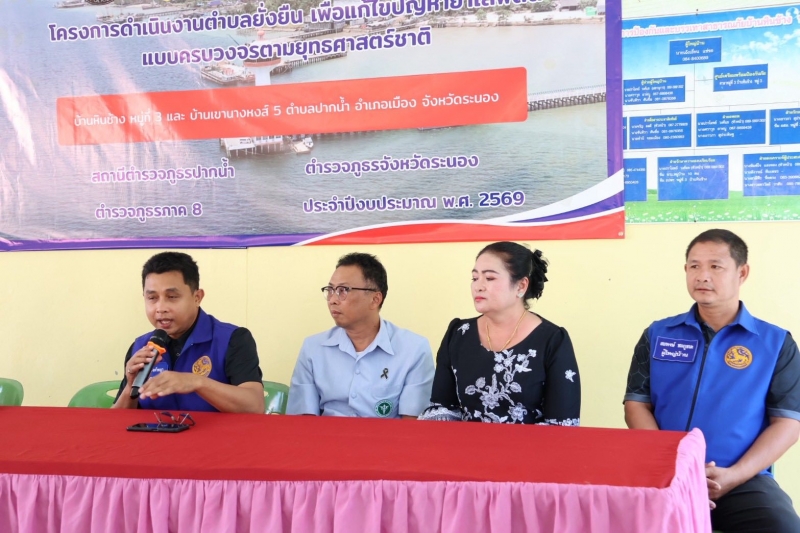 วันที่ 11 กุมภาพันธ์ 2569 นางสาวนารียา ยีซาแล นายกเทศมนตรีตำบลปากน้ำท่าเรือ พร้อมคณะผู้บริหาร ข้าราชการและพนักงานจ้าง เทศบาลตำบลปากน้ำท่าเรือ ร่วมพิธีเปิดตามโครงการตำบลยั่งยืน เพื่อแก้ไขปัญหายาเสพติดแบบครบวงจรตามยุทธศาสตร์ชาติ ณ อาคารเอนกประสงค์บ้านหินช้าง หมู่ที่ 3 ต.ปากน้ำ อ.เมือง จ.ระนอง