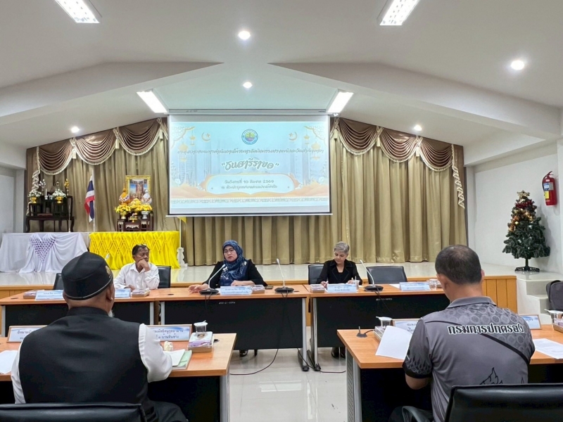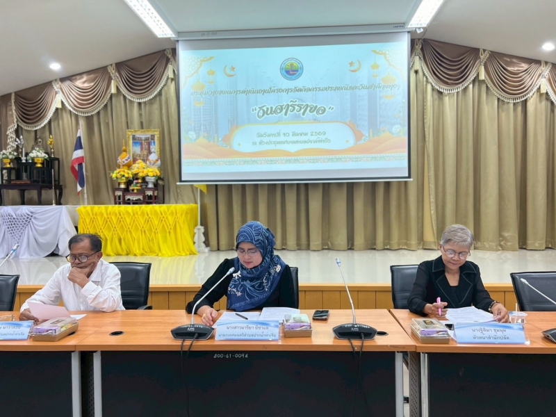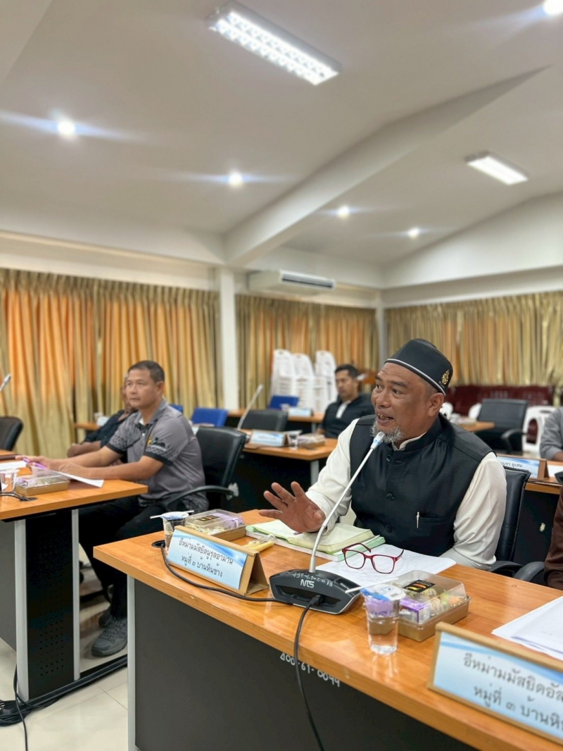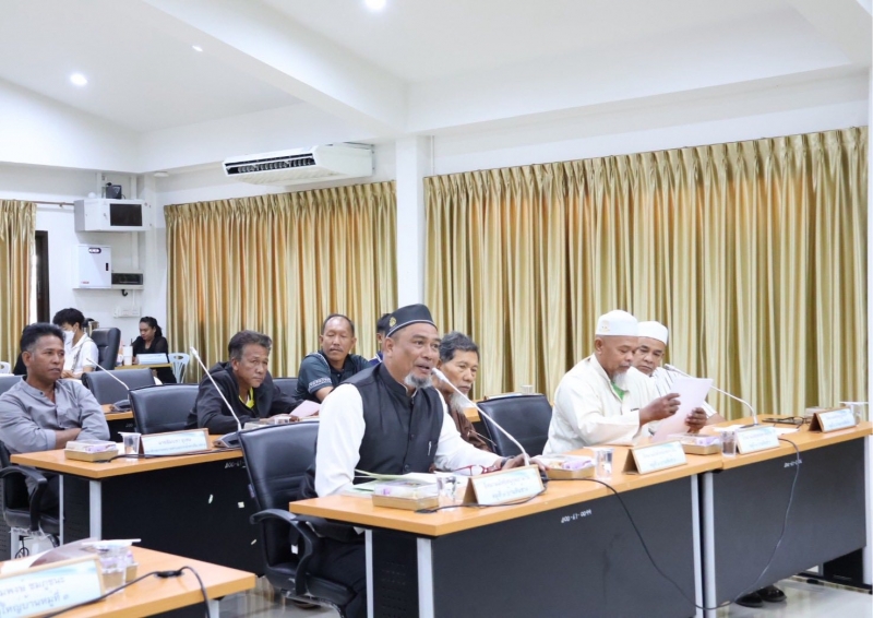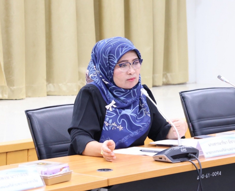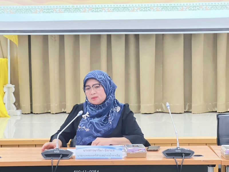 นางสาวนารียา ยีซาแล นายกเทศมนตรีตำบลปากน้ำท่าเรือ ประธานกล่าวเปิดการประชุมวางแผนการดำเนินงานโครงการจัดกิจกรรมประเพณีและวันสำคัญต่างๆ “วันฮารีรอยอ” ณ ห้องประชุมสภาเทศบาลตำบลปากน้ำท่าเรือ